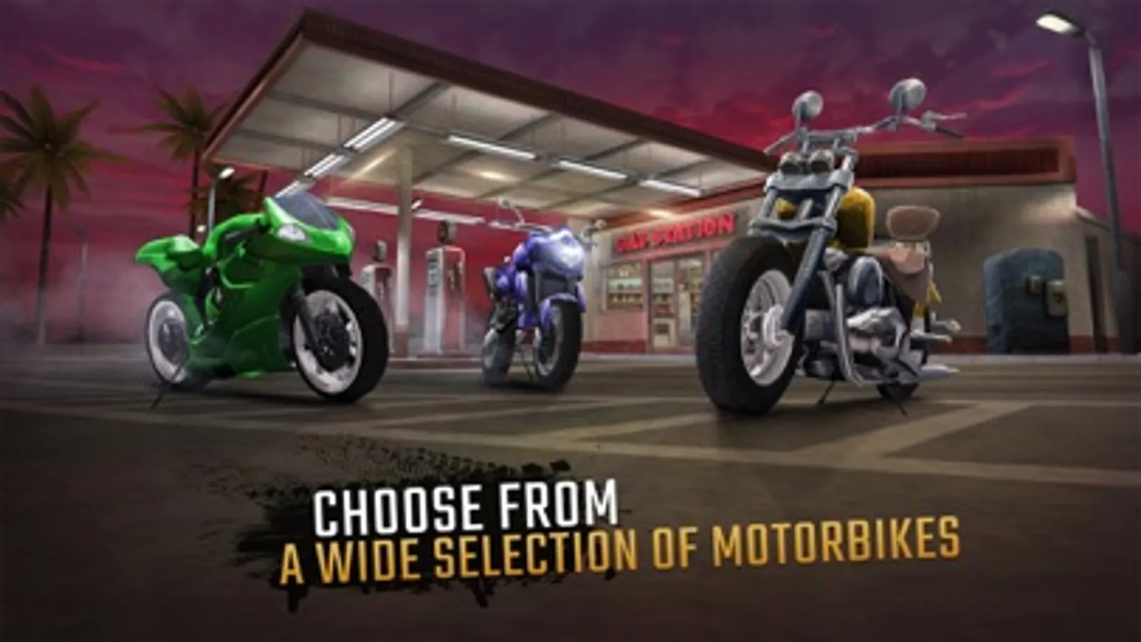 Have you ever wanted to ride a motorcycle in real life? Great! It's about time to test your skills and decide on the motorcycle category you would choose – extremely fast superbike, epic chopper motorcycles or modified high-performance versions of off-road motorcycles! Every bike has its own individual extras: total lives, near miss bonus, high-speed bonus or wrong way bonus.