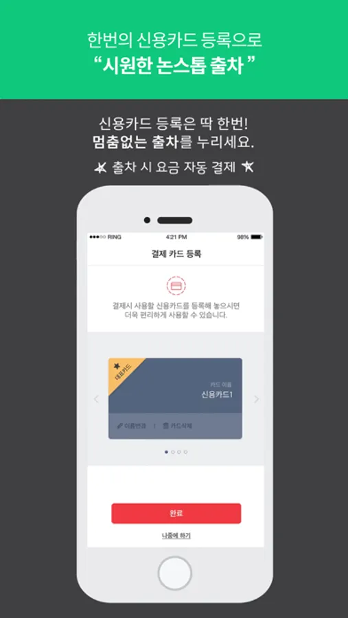 - 하이그린패스: 신용카드를 한 번만 등록해 놓으면 출차 시 앱을 이용하여 요금을 결제할 수 있어 정산소에서 요금 결제를 위해 기다릴 필요가 없습니다.
