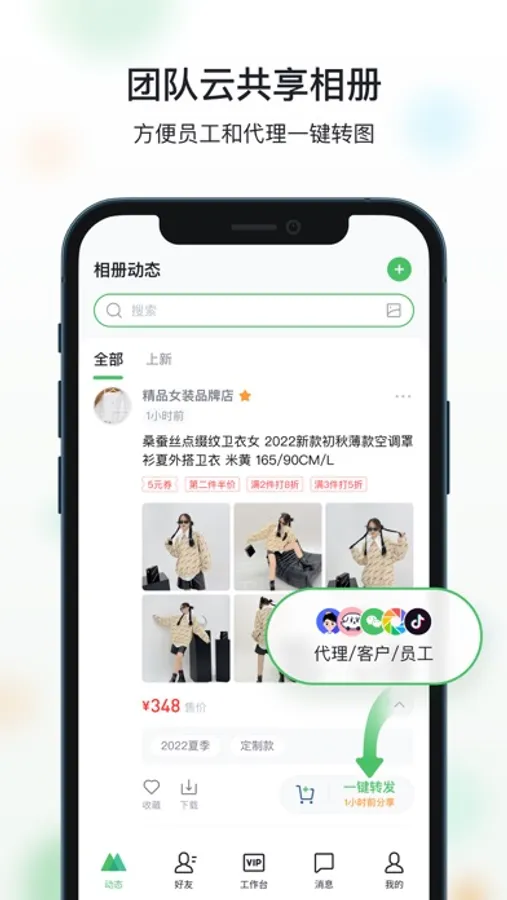 (1)一键转发:只需关注上家的微商相册,便能1秒将上家的全店图文转发至自己的微商相册,上家为你一件代发,真正做到“0成本做生意、发发朋友圈就能有收入”。