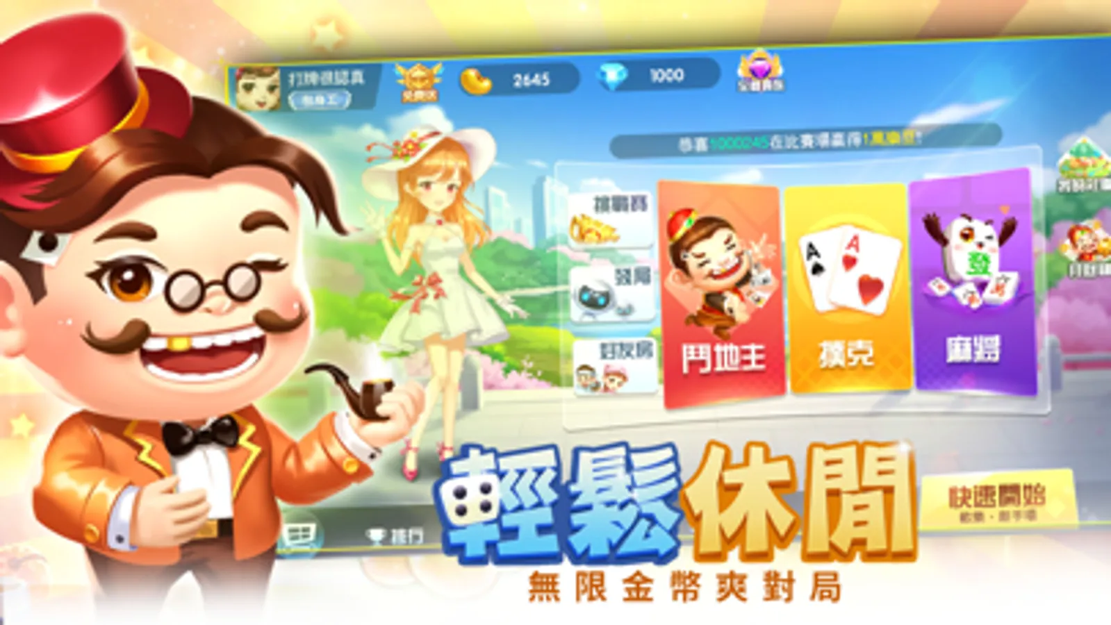 鬥地主經典/癩子/洗牌/瘋狂炸彈、鋤大地、大老二、十三支,應有盡有,百玩不厭!