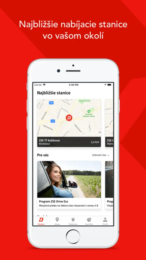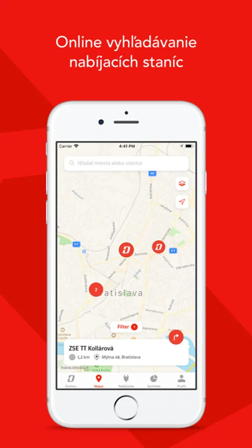 Aplikácia ZSE Drive ponúka online vyhľadávanie nabíjacích staníc v sieti ZSE Drive, v sieti Domáceho roamingu na území Slovenskej republiky a v sieti Zahraničného roamingu v celej Európe. Získajte tak prehľad o polohe najbližších nabíjacích staníc vrátane informácií o ich dostupnosti či obsadenosti.