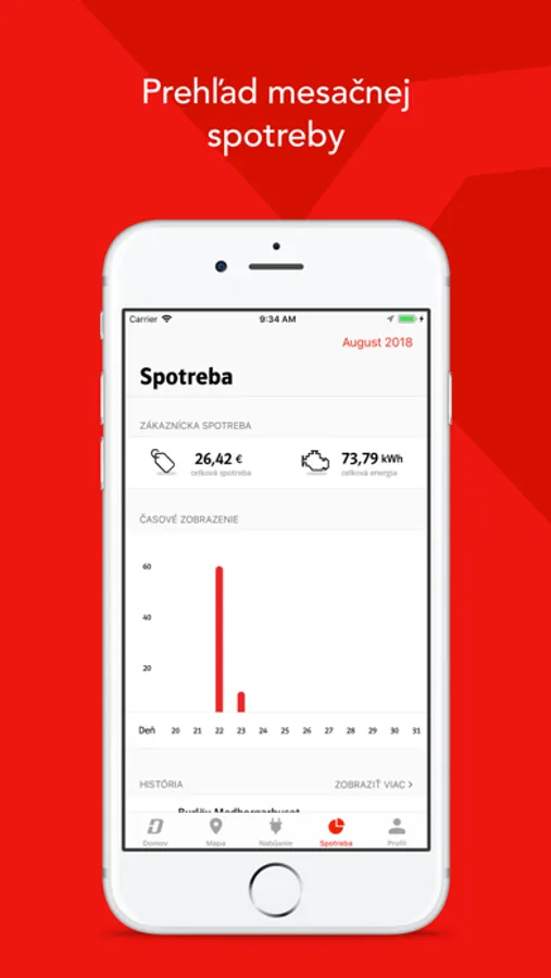 Aktuálny stav a história nabíjania vrátane štatistík na jednom mieste. Prostredníctvom aplikácie môžete zmeniť aj typ zvolenej služby nabíjania.