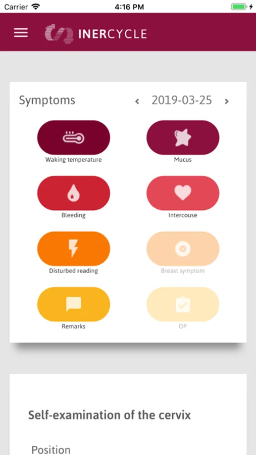 Noting the body temperature measurements and cervical mucus observations and interpreting these signs you can indicate fertility and infertility days with great precision. INER Cycle is consistent with the nature, ecological, without limitations to creation and access to the cycle cards.