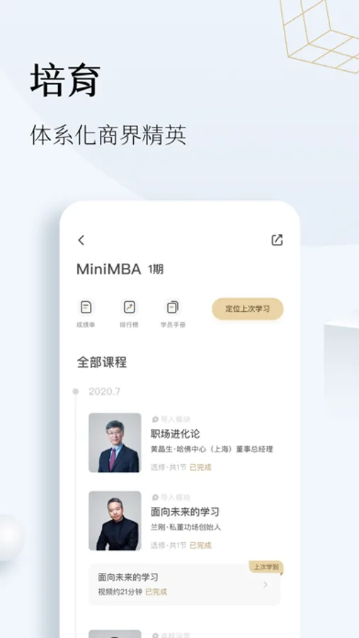 「1」全年50门+新商学在线公开课,涵盖经济、科技、哲学、商业、管理、职场六大领域。