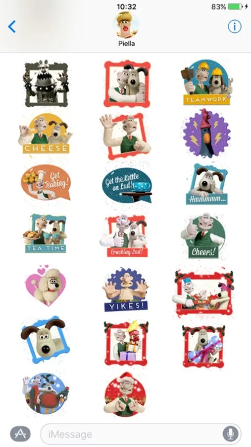 New from the world of Wallace and Gromit: 20 colourful iMessage stickers to send to your friends and family! Featuring 20 cracking designs, including Christmas stickers and favourite catchphrases, the stickers can be added to your messages and photos or sent on their own!