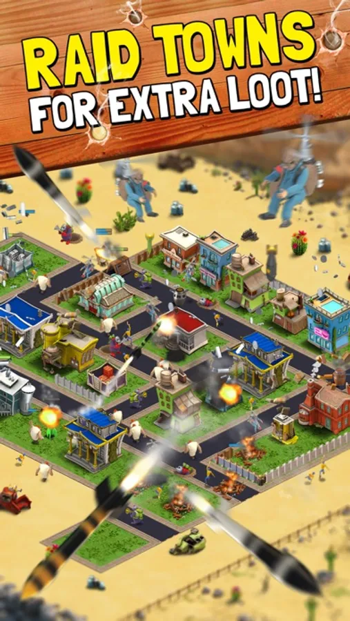 - Defend your town with units such as Barrel Guns, flame throwing Barricades, Rocket Launchers, Plasma Towers and hidden exploding surprise