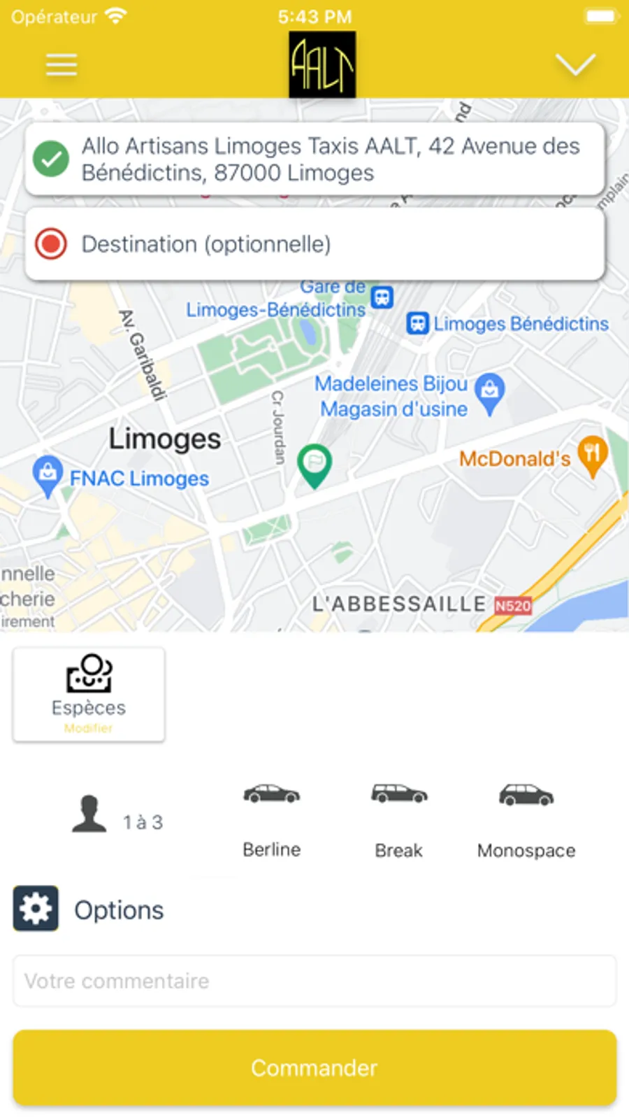 - Commander un taxi 24h/24h et 7j/7j n’importe où sur LIMOGES et sa région