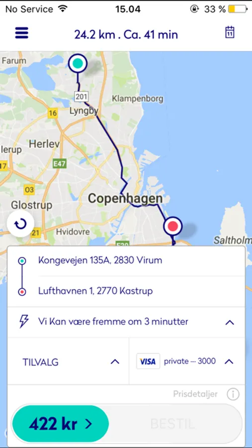 Vi finder den bedste rute, udenom den værste trafik, inden vi udregner din fastpris. Vi bruger Google Maps til at udregne ruten, og vil altid tilbyde dig den optimale rute, ud fra Google Maps’ ruteforslag. Googles logik tager højde for trafikforholdene på tidspunktet, så du ikke behøver at tænke på det.