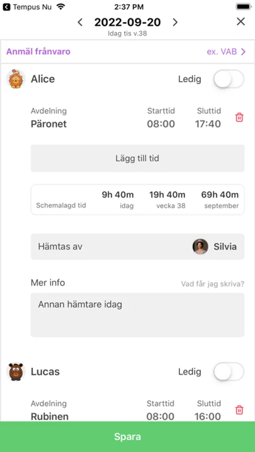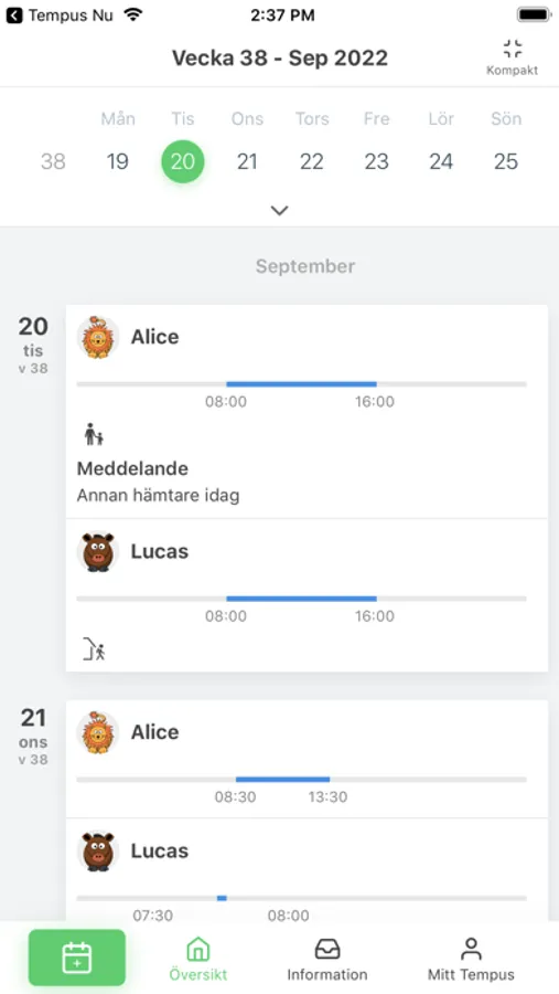 Tempus Hemma används för att schemalägga förskolebarn och fritidsbarn på smidigast möjliga sätt. Du kan även få pushnotiser när ditt barn checkar in eller ut på sin avdelning.