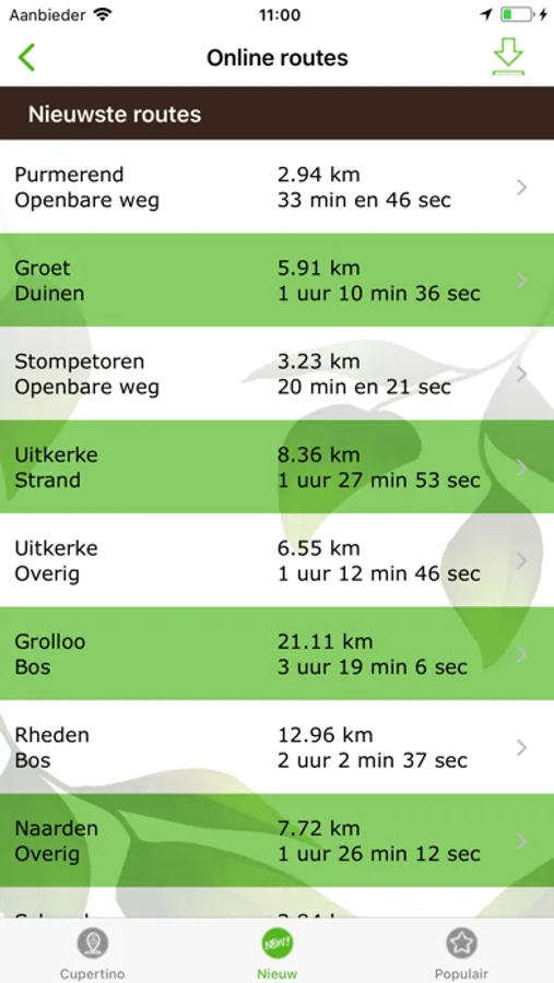 - ‘online routes’, bekijk de routes op jouw locatie, nieuwe routes en populaire routes.