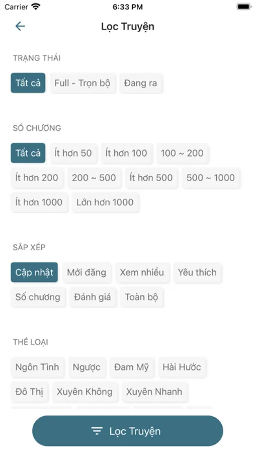 + Đầy đủ các thể loại truyện đặc sắc : ngôn tình, ngược, xuyên không, đam mỹ, đô thị, tiên hiệp, dị giới, teen, hài hước, ...