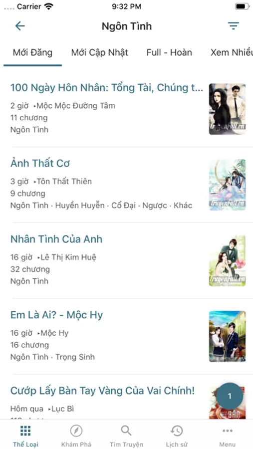 + Đầy đủ các thể loại truyện, tiểu thuyết mới nhất, đang hot