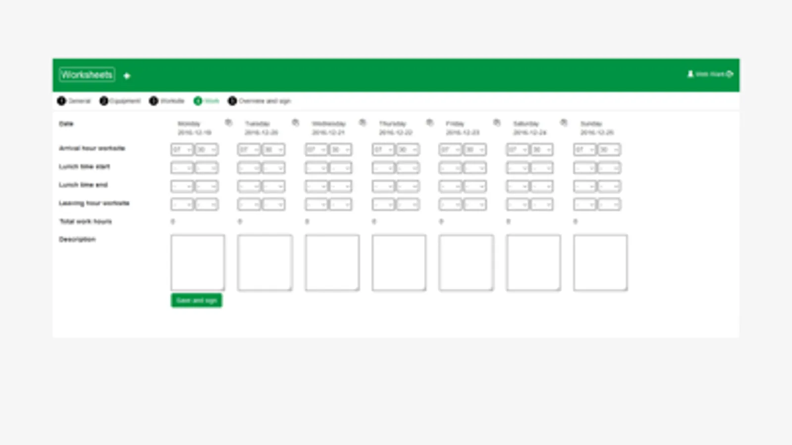 This app makes it possible for crane drivers to generate worksheets. The worksheet records the hours worked and the work done. The worksheet can be signed in the app by the customer, after which a confirmation is sent by e-mail to the crane operator and customer.