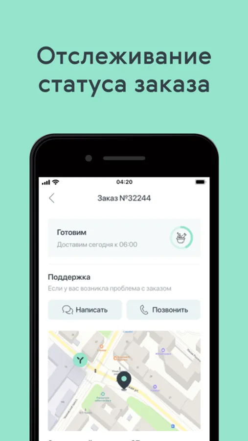 Мобильное приложение позволяет сделать заказ еды домой или в офис, в реальном времени узнать его статус, отследить перемещение курьера по карте. Доставим ваш заказ до двери примерно за 45 минут.