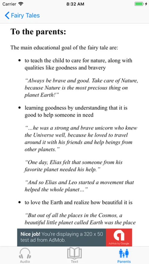 - Each fairy tale contains a section for the parents outlining the lessons of the story.