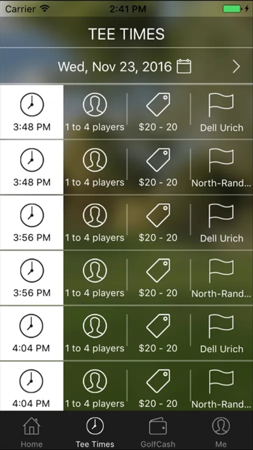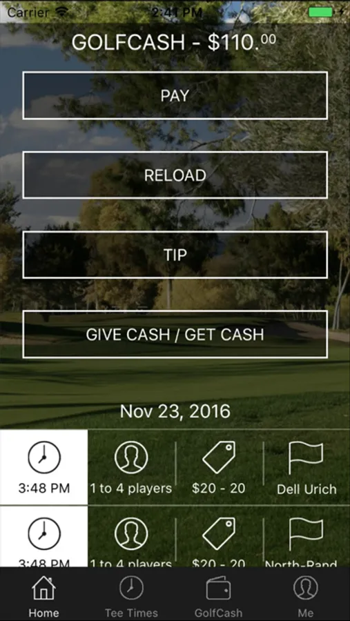 Booking a tee time is as easy as 3-taps and once you've setup your account the app will remember you so its always 3-taps. You can always look up your reservations and cancel reservations if you need to as well. Plus view and redeem your rewards or promotion codes anytime.