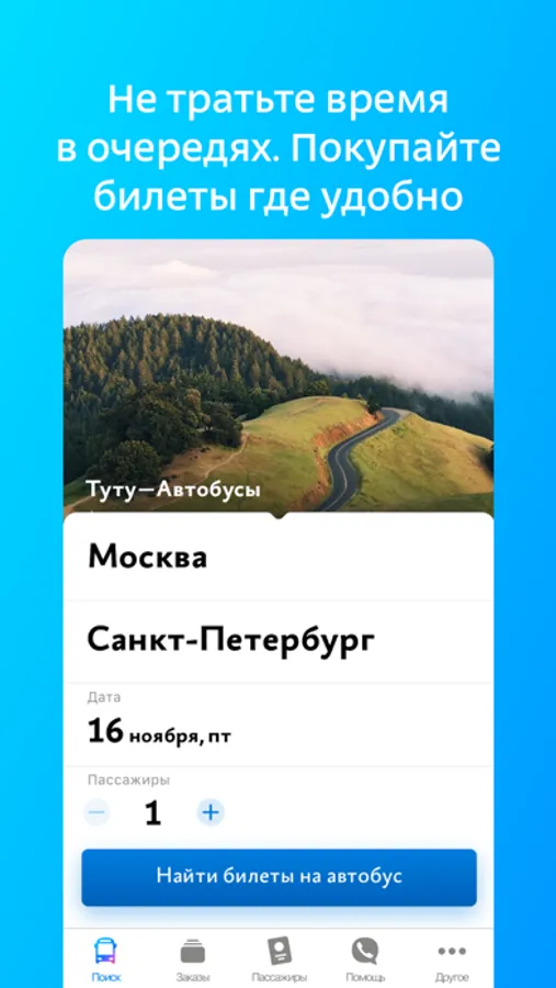 Покупайте билеты на пригородные и междугородние автобусы в приложении Туту ру. Не стойте в очередях — посмотрите расписание, выберите место и оплатите билет прямо в приложении. С распечатанным билетом садитесь в автобус. Работаем с автовокзалами России, стран СНГ и Прибалтики. Попробуйте!