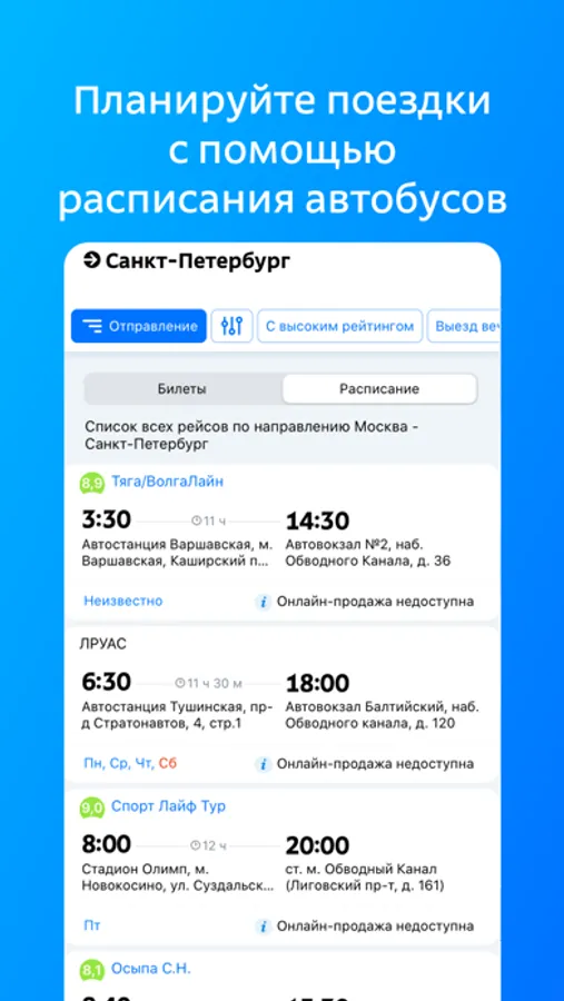 • Расписание автовокзалов и рейсов.