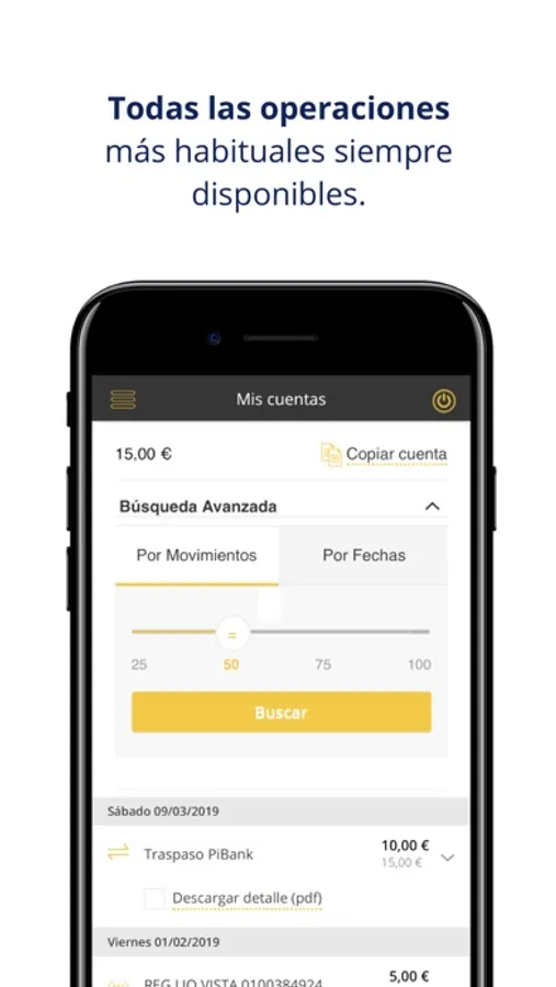 Podrás realizar tus operaciones más frecuentes, como consultar tus saldos y movimientos, realizar trasferencias y traspasos, gestionar tus recibos domiciliados y muchas más.