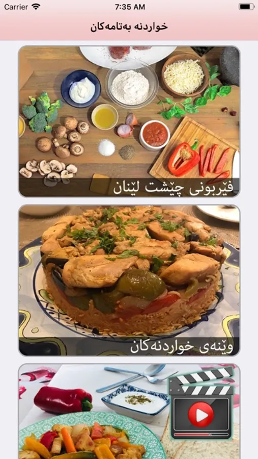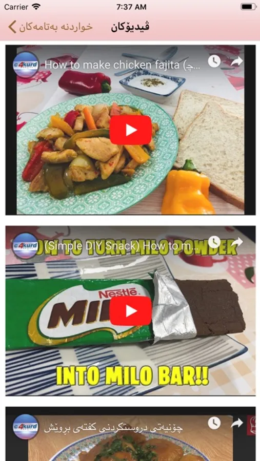 ههروهها بونی بهشی ڤیدیۆی فێركاری لێنانی چێشت. كه تێیدا به ڤیدیۆ باسی دروستكردنی خواردنتان بۆ دهكهین و به بهردهوامی فێركاری تازه دادهنێین.