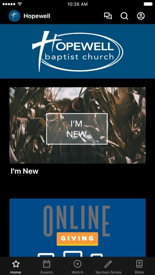 The Hopewell Baptist App was created with the Subsplash App Platform.