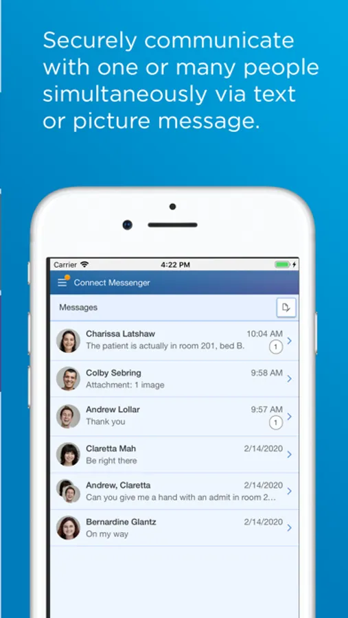 CareAware Connect Messenger for iPhone supports clinical mobility by providing secure communication, simplifying care-team collaboration, and supporting effective alert management. With a focus on workflow that supports voice communication, text messaging and alerting on a single device, CareAware Connect Messenger unifies clinical communications across roles and venues.