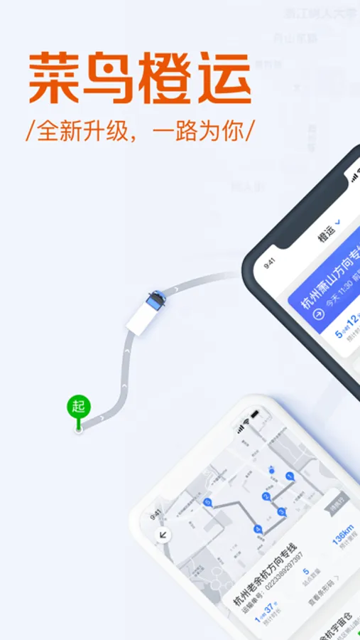 菜鸟橙运APP是提供给司机、承运商和管理人员的手机终端,司机通过它可以无缝共享平台配送任务,轻松在手机 上实现地图导航、路径规划、联系买家、实时签收、异常反馈等功能,而管理者则能轻松实 时监控配送的各个环节。