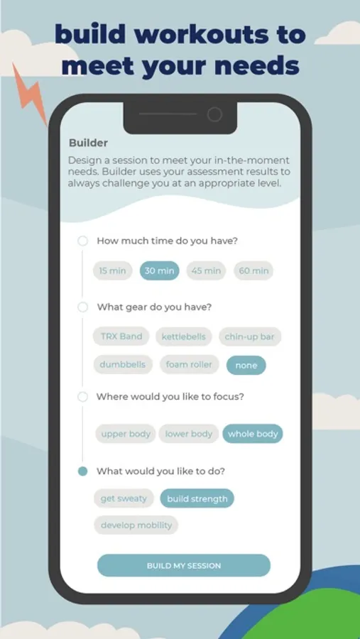 Our mission at movr is to make healthy movement more accessible for everyone. No matter where you're starting from or what you're working with, the movr app adapts to you. You don't even need equipment!
