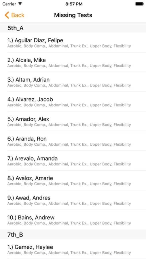 •Choose what fitness test(s) you want to display to input scores
