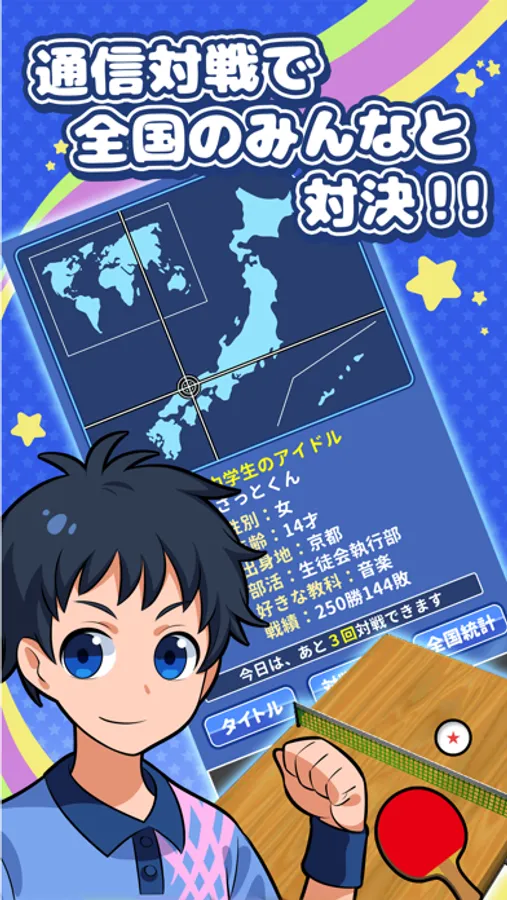 全国の卓球プレイヤーと戦ってランキング上位をめざせ!!