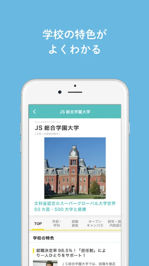 日本の学校アプリは、大学・短期大学や専門学校の進学先の検討~決定に役立つアプリです。