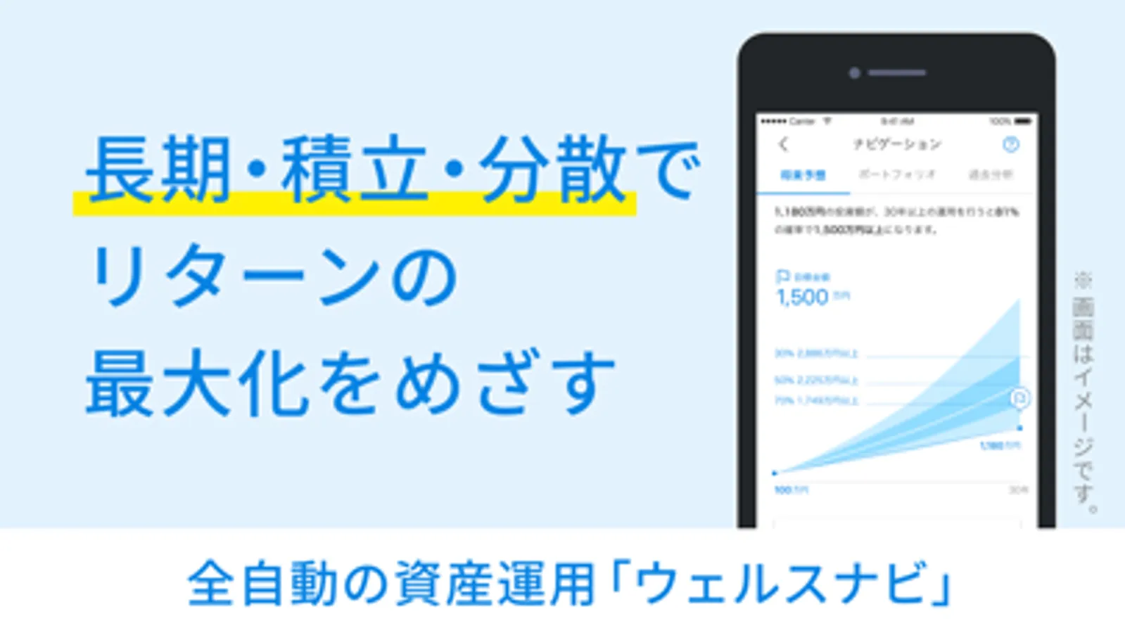 世界水準の資産運用サービスをスマホひとつで実現。本格的な資産運用が1万円からはじめられ、毎月の積立も1万円からご利用できます。