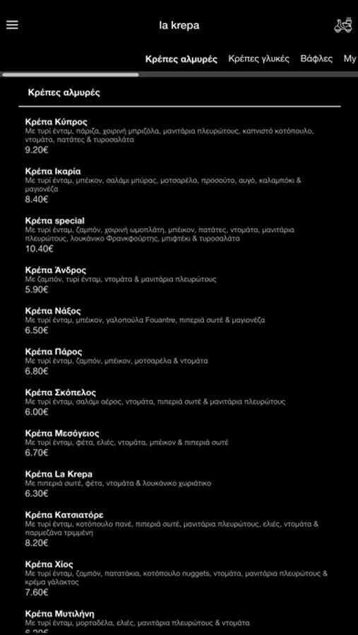 Delivery services: Crepe, Waffle, Ice cream, Coffee