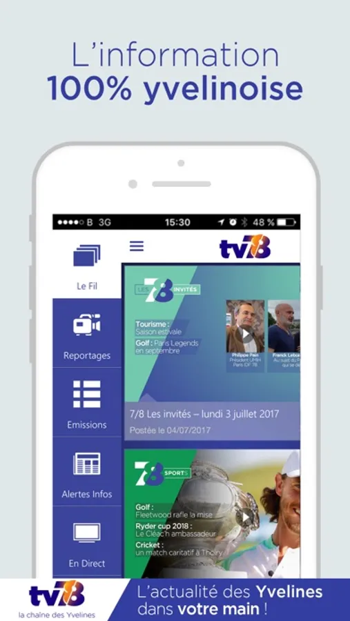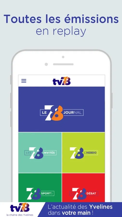 L'application TV78 est utilisable en France. Certains programmes en direct ou en replay peuvent être indisponible suite à des restrictions juridiques.