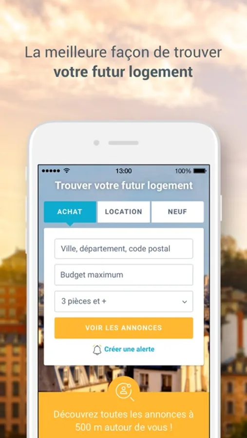 Avec l’application Bien’ici, consultez facilement toutes les offres immobilières de location ou d’achat en France, dans le neuf ou l’ancien. Choisissez la ville ou le département ainsi que le type de bien que vous recherchez : maison, appart, loft, atelier, terrain, bureaux… tout y est ! Et pour affiner votre recherche, précisez vos critères de budget, nombre de pièces, surface, avec jardin, parking, ascenseur… Vous souhaitez encore plus de précision ? Dessinez directement sur la carte la zone de recherche qui vous intéresse et découvrez immédiatement les biens immobiliers disponibles !