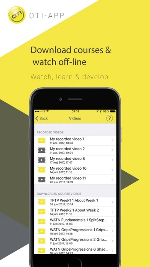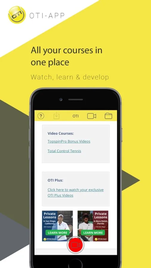 The OTI app allows you to view your courses online or to download them for offline viewing. You can also easily record a video of your stroke and send it to us with just a few clicks! Simply start recording your video with a button and then click on send when you are done.