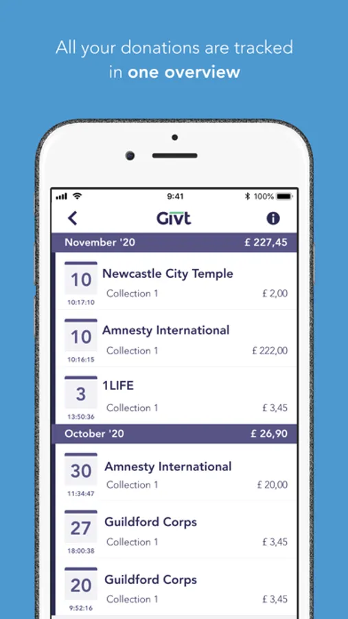 Givt offers a secure and easy way to donate to charity and church by using your mobile phone. How easy? Simply open the app, select an amount and scan a QR-code, move your phone towards a collecting box or bag or select your goal from the list and that’s it. Clear, easy, and safe. Givt ensures that your donation will arrive at the charity fund, church or street musician. Yes, you can use Givt in every situation you would normally give cash instead.