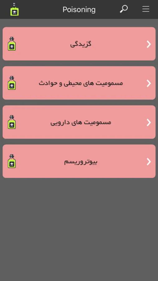 اپلیکیشن مسمومیت ها شامل مجموعه از اوردر های بیماری های مسمویت می باشد که در زمینه های زیر ارایه شده است: