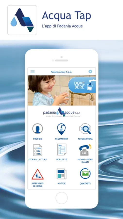 Autoletture, punti di analisi per verificare parametro per parametro la qualità della tua acqua, stato degli interventi aggiornato, segnalazione guasti: tutto questo, e altro ancora, con un’app gratuita, veloce e semplice da usare.
