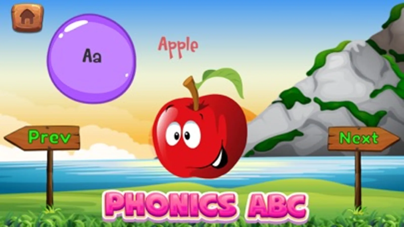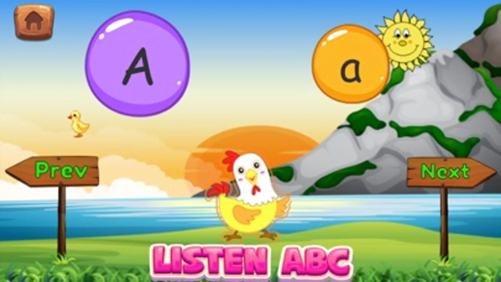 * Find the Correct Image - Kids are asked to choose which item among 3 items that its first letter is the same as the given letter. As for example, given letter A, and there are 3 items: apple, bunglon, and banana. If kids click the “Apple” item, it will be correct, otherwise it will be wrong!