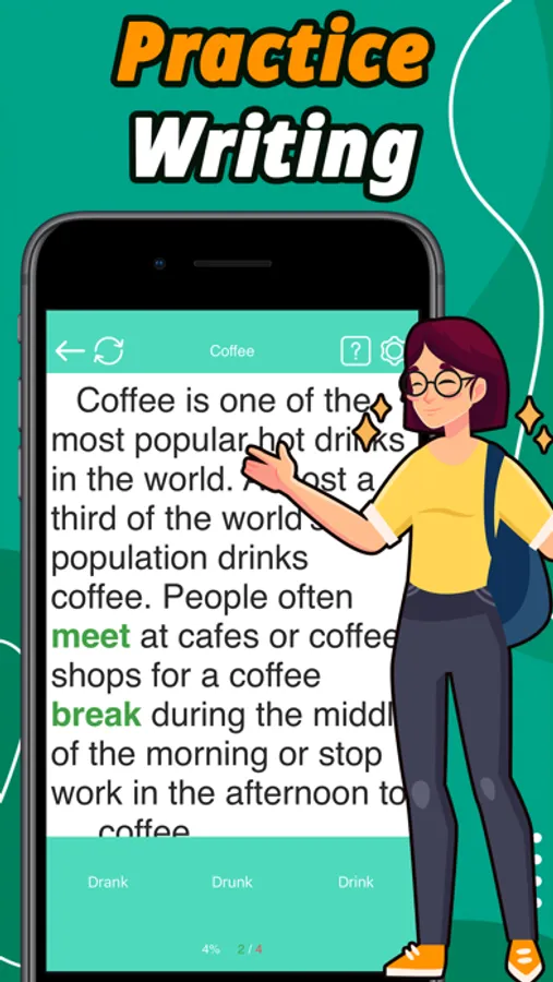 Learn English verbs regularly with our app, improve your speaking and writing skills!