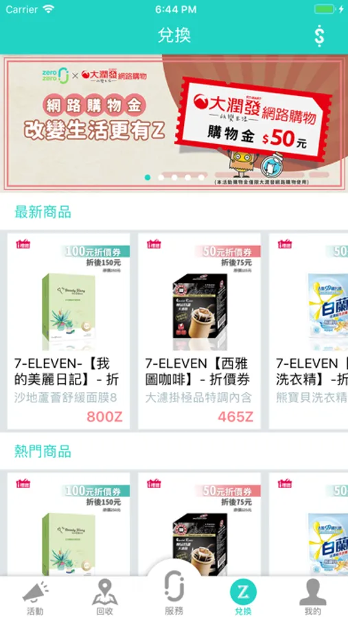 完成回收再打卡還可以賺z幣換好康,快讓回收變成你最值得分享的新生活運動。