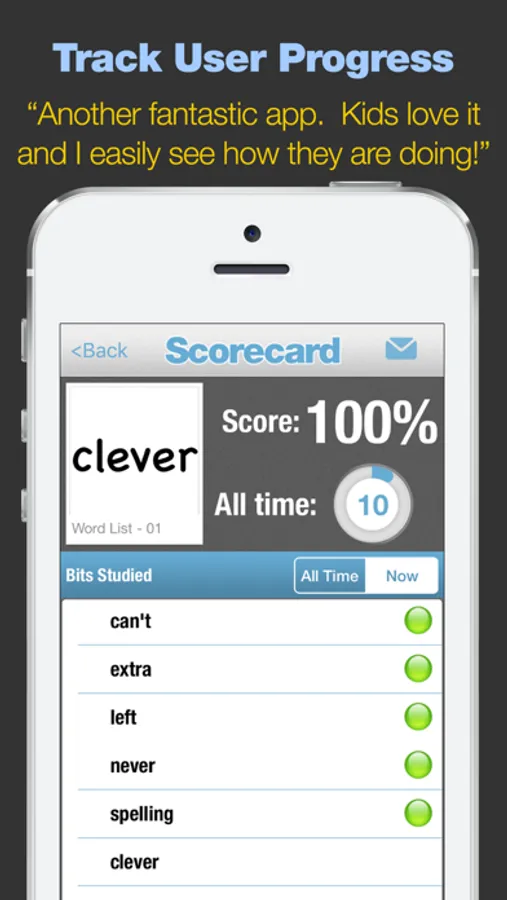 - Within each spelling list, you can star favorite items to focus on just the right words