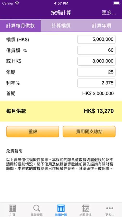 按揭計算 - 提供用戶計算置業開支及按揭貸款
