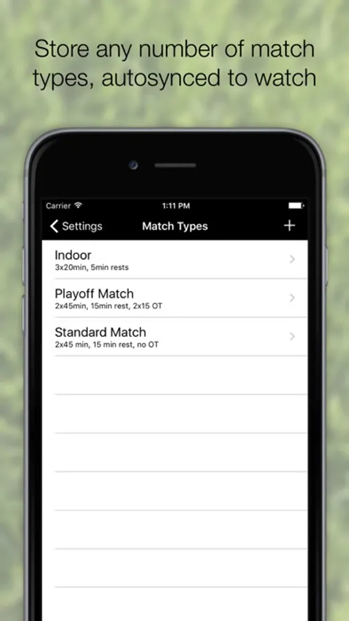 Simple but powerful configuration from the iPhone with automatic synchronization to the Apple Watch allow you to create match configurations for every type of match that you officiate.