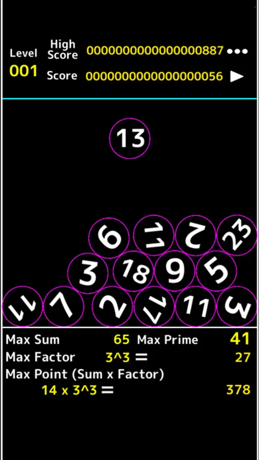 - If the number falling from the top is not a prime number (composite number), decompose it until it becomes a prime by tapping.