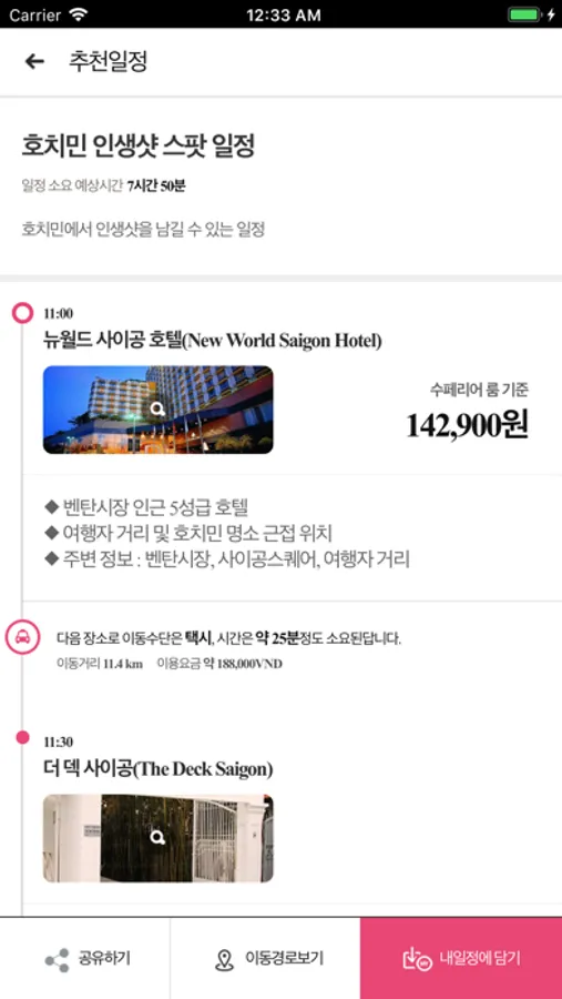 2. 여행일정을 내 마음대로 : 현지 추천 일정을 내맘대로 편집해서 내일정으로 만들고, 일정 시간과 비용을 계산해 주는 스마트한 일정 만들기.