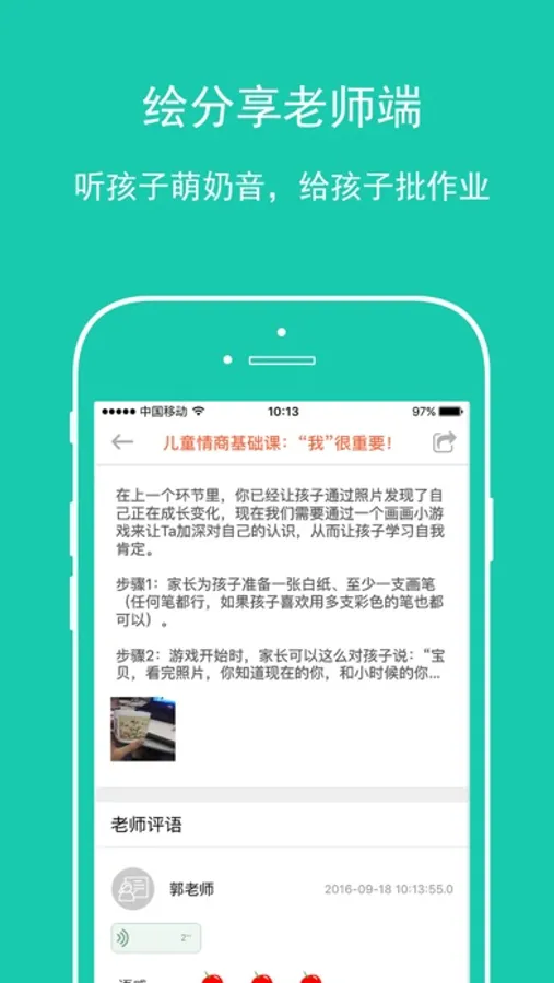 绘分享教师端是绘分享提供给课程教师移动在线的教学服务平台,支持看作业、作业讲评、远程教学、实时分享等功能,全部一键完成,可高效帮助老师完成教学活动,完善线上课程学习生态。