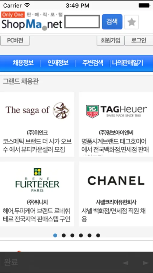 패션, 의류, 귀금속, 화장품, 잡화, 가전, 정보통신, 등 각 분야별로 매장운영에 꼭 필요한 특화된 전문 판매직 채용정보가 하루 평균 1200여 건씩 등록되고 있다. 브랜드뱅크, 샵마스터정보, 유통가소식등 패션 및 잡화 화장품등 채용정보외에 판매직종에 필요한 전문정보를 다룬 다양한 컨텐츠를 제공하고 있습니다.
