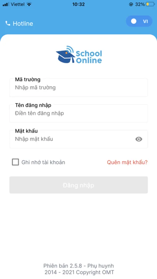 Ứng dụng di động dành cho Phụ huynh của Hệ thống tương tác Trường học thông minh SchoolOnline. Giúp phụ huynh cập nhật những thông tin nhanh nhất về tình hình học tập, thông báo từ Nhà trường